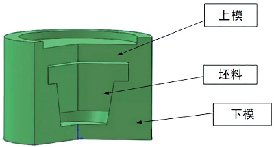 經(jīng)過分析選擇如圖28所示的單元成形模型,此模型是一個正擠壓模型,下模由擠壓筒和擠壓型腔組成。